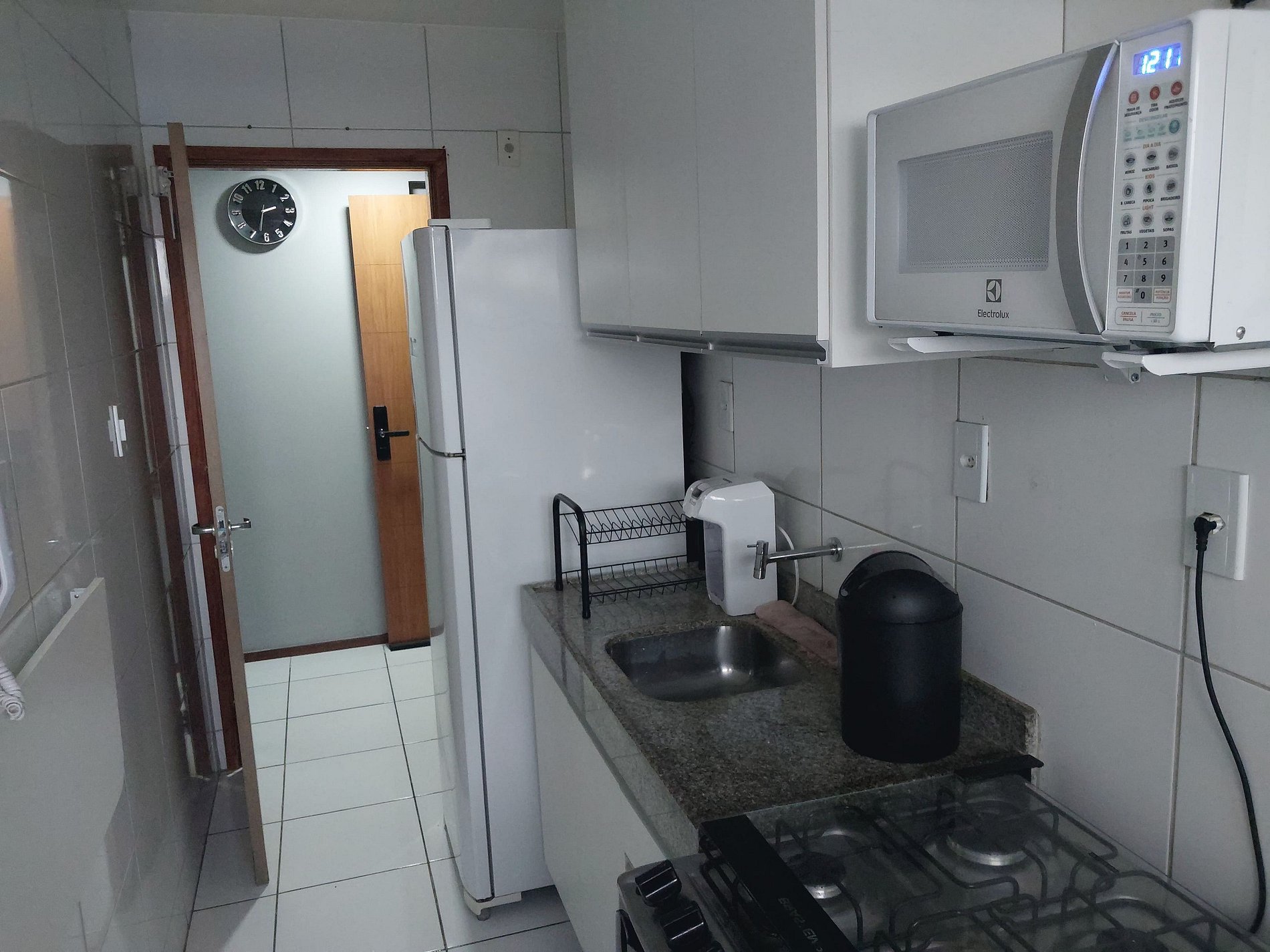 A cozinha é equipada para pequenas refeições. Não fornecemos itens perecíveis (óleo, sal, café etc.).