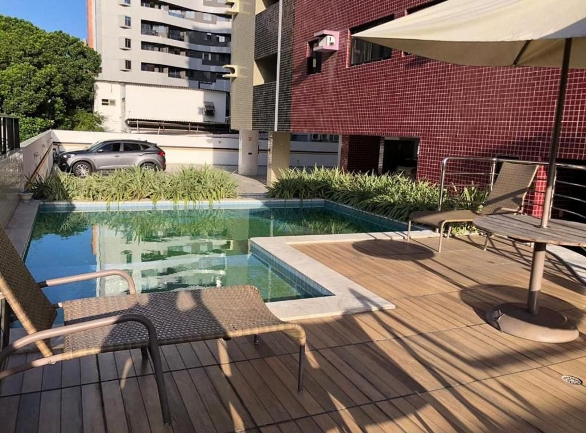O edifício oferece vaga de garagem privativa e gratuita, garantindo segurança e comodidade para quem vem de carro ou aluga um durante a estadia.